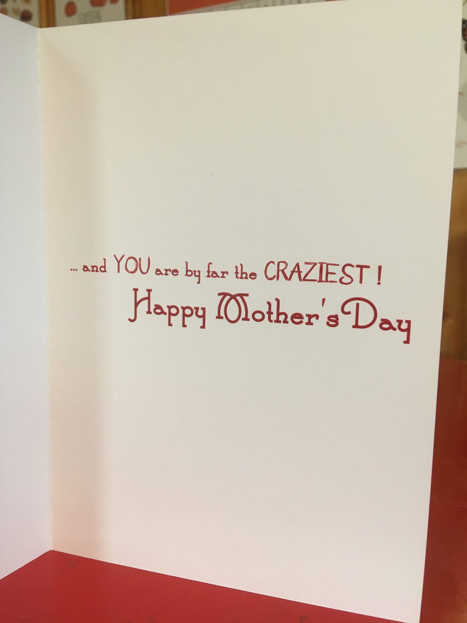 Inside: and YOU are by far the CRAZIEST! Happy Mother’s Day